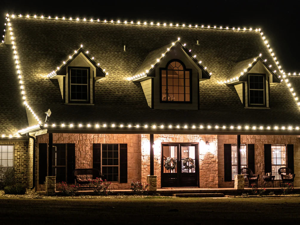 Our team custom-fits professional-grade C9 lights to your roofline, trees, and landscaping, ensuring a clean, elegant look that enhances your property’s beauty and holiday spirit. We work with classic warm white and we tailor every installation to match your style and budget.